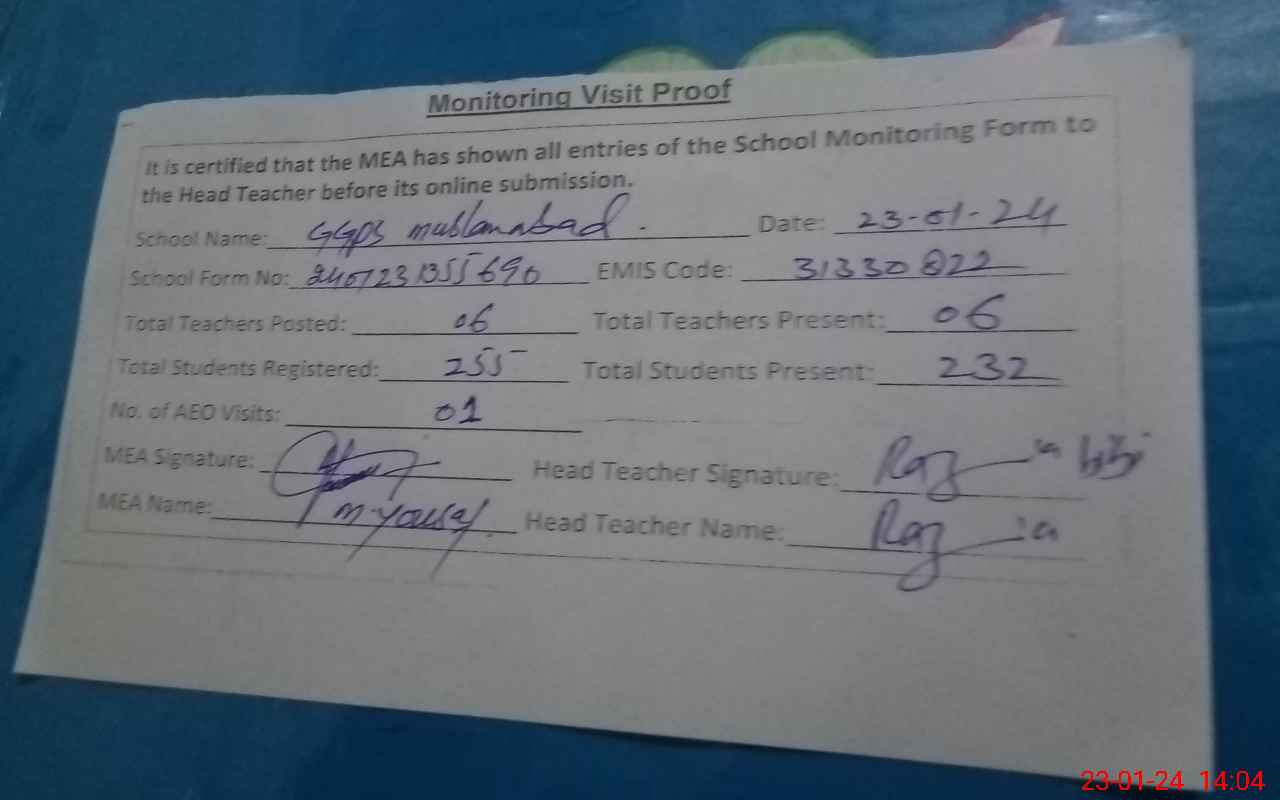 | EMIS Code: 31330822 | Name of School: GGPS MUSLIM ABAD NEW RAFEEQ ABAD | |||