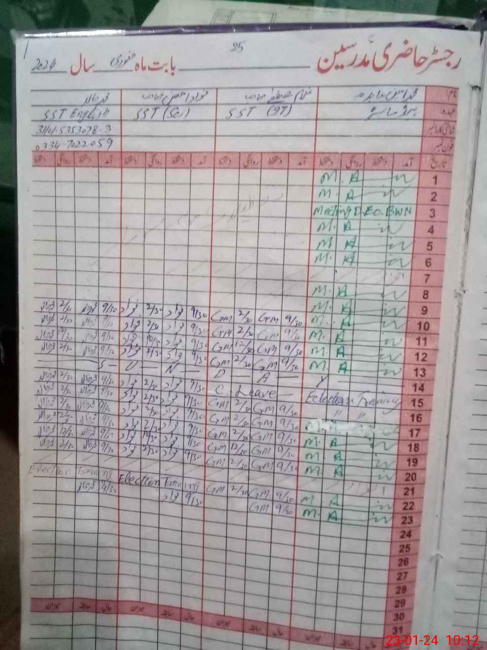 | CNIC | Full Name | Designation | R/C | Absence During Last Calender Month |
