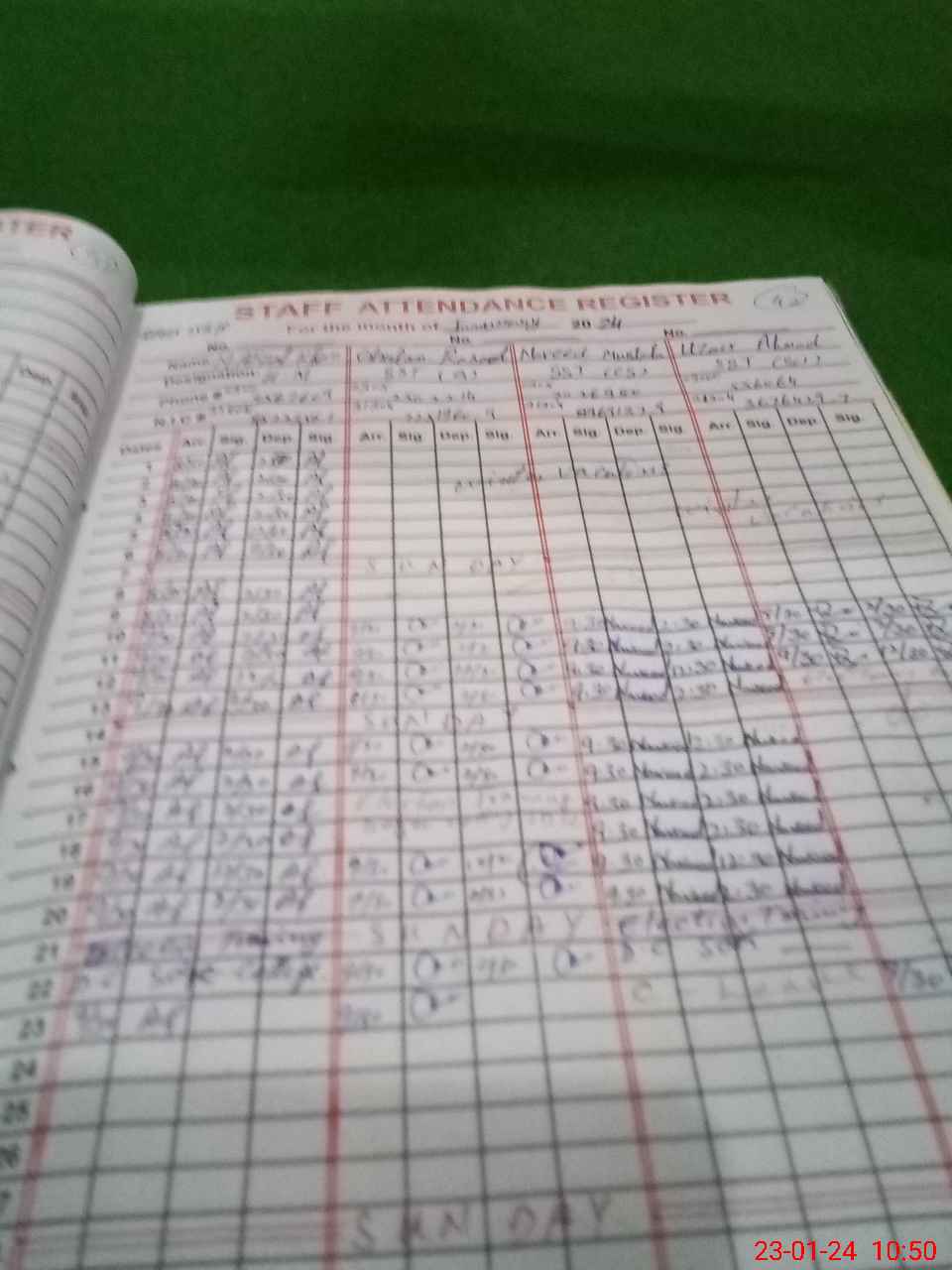 | 31**** | Ha**** Kh**** | BELDAR | 0 | 0 | 27 | 0 | 0 | 0 | 0 | 0 | 0 | Absent (Un-Authorized) | |