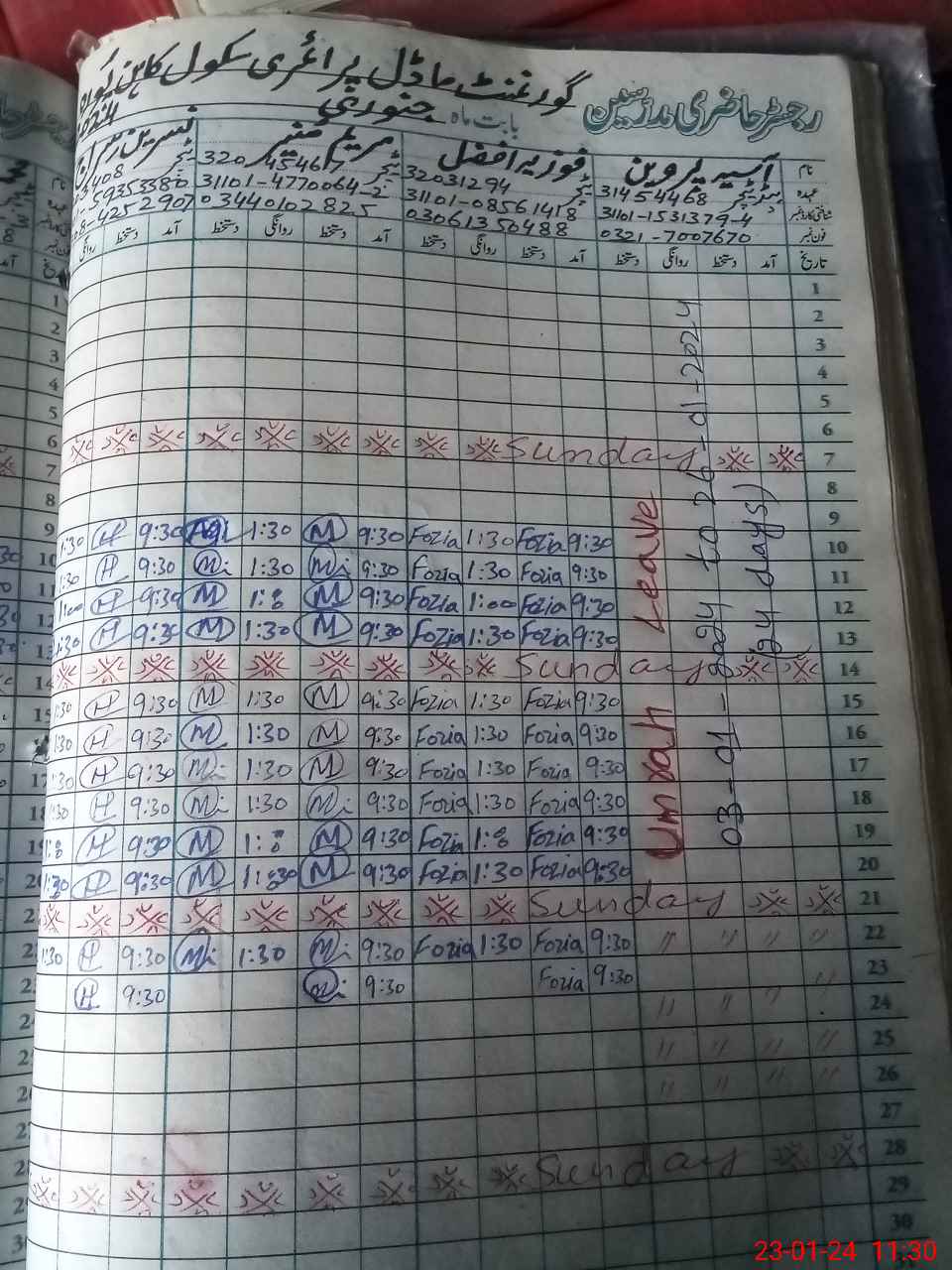 | CNIC | Full Name | Designation | R/C | Absence During Last Calender Month |