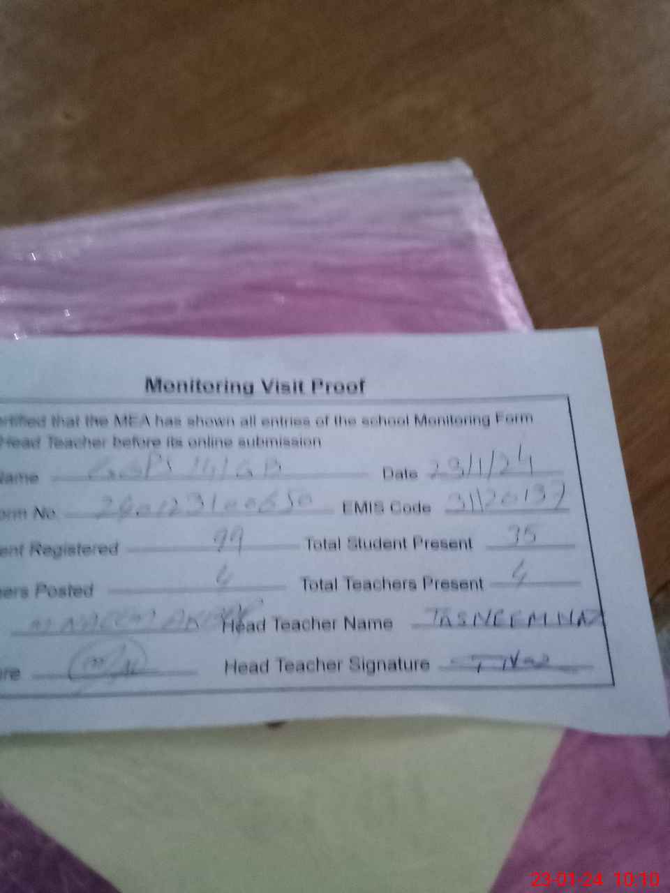 | EMIS Code: 31120137 | Name of School: GGPS CHAK NO 14/GB | |||