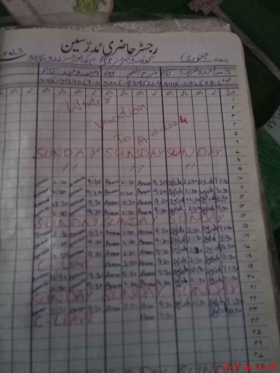 | Name: SA**** SH**** Designation: (School Headmaster's/Headmistress's) PST Phone/Cell Number: 03**** |