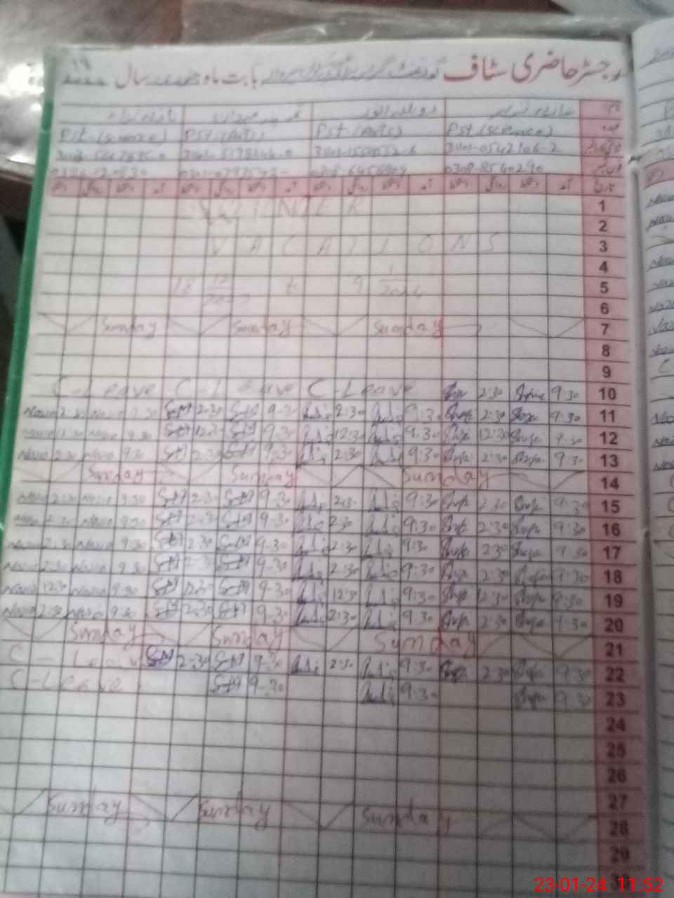 | CNIC | Full Name | Designation | R/C | Absence During Last Calender Month |