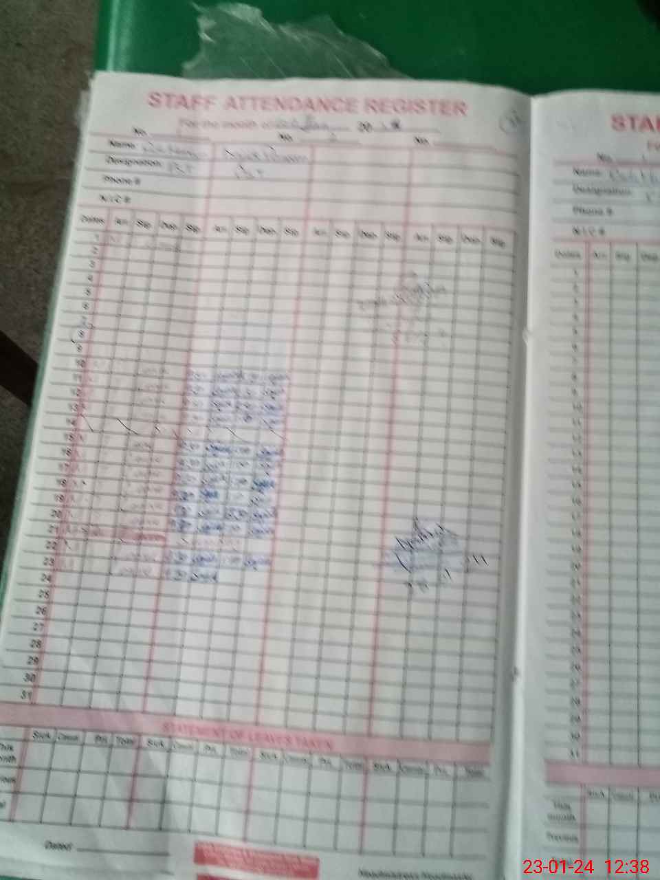 | Leave | Duty | Absent | Maternity | Medical | Ex- Pak |