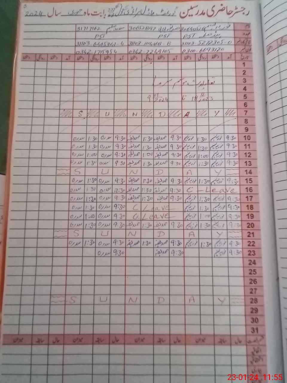 | CNIC | Full Name | Designation | R/C | Absence During Last Calender Month |