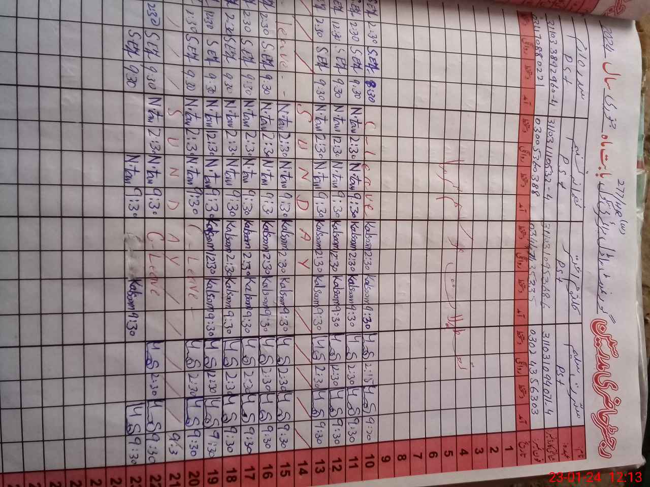 | CNIC | Full Name | Designation | R/C | Absence During Last Calender Month |
