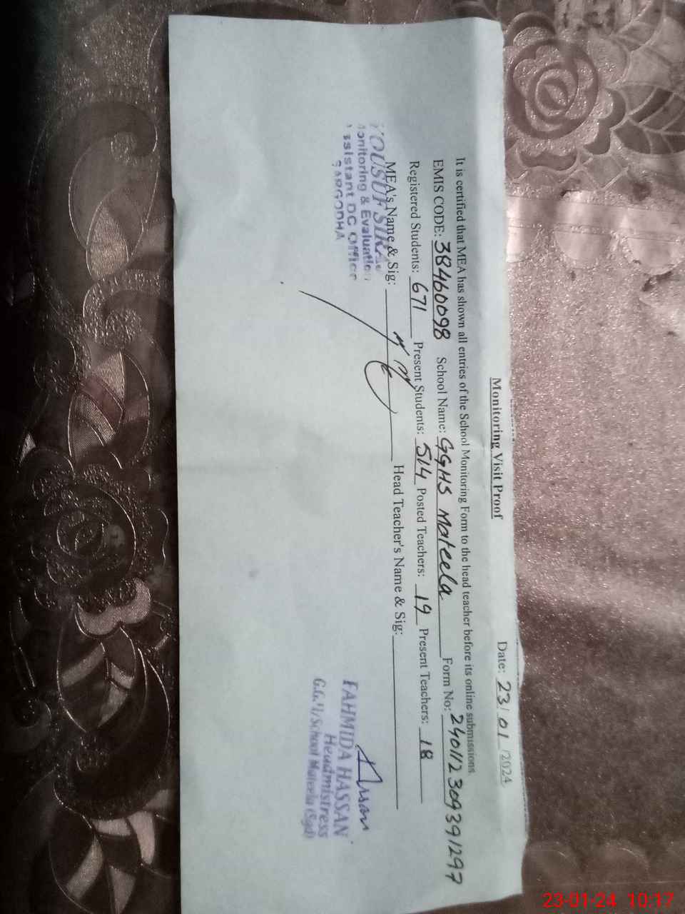 | EMIS Code: 38460098 | Name of School: GGHS MATEELA | |||