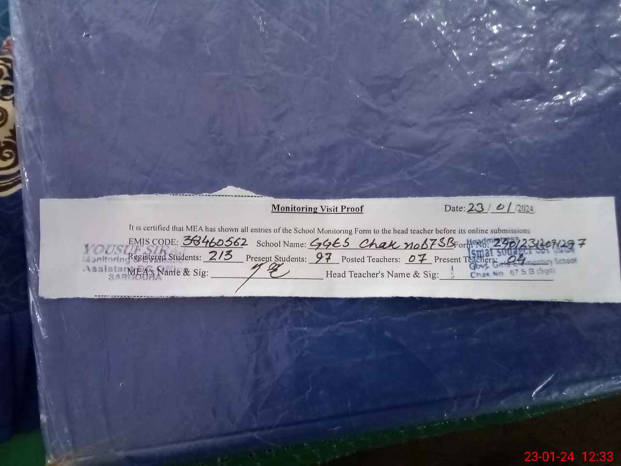 | EMIS Code: 38460562 | Name of School: GGES CHAK NO.67 SB | |||