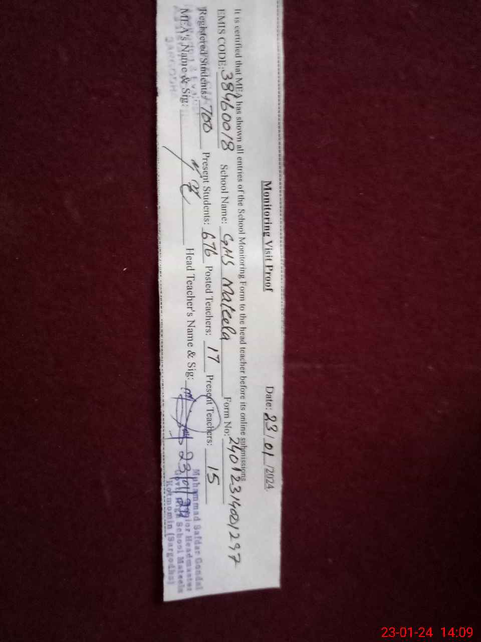 | EMIS Code: 38460018 | Name of School: GHS MATEELA | |||