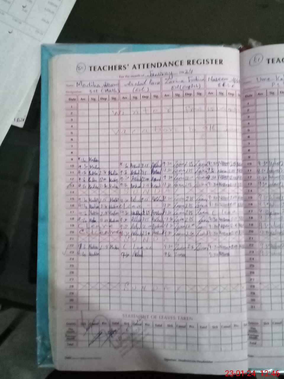 | Leave | Duty | Absent | Maternity | Medical | Ex- Pak |