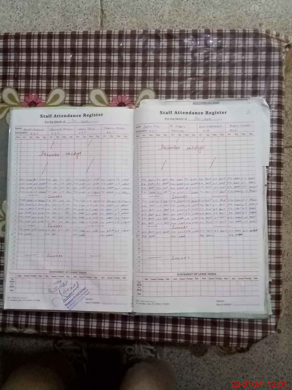 | Attendance Register | Head Teacher | MEA with School | Visit Proof |