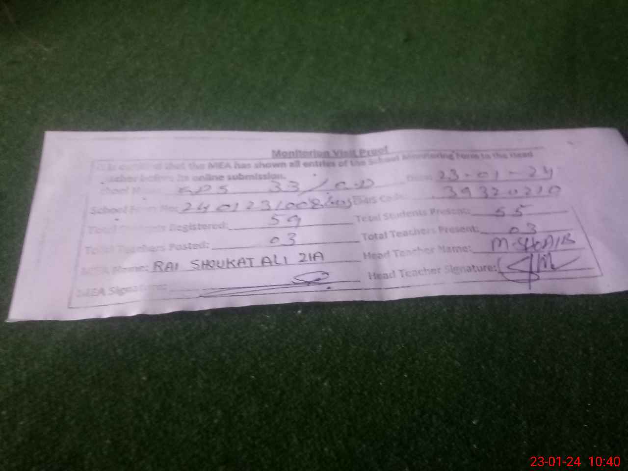 | Attendance Register | Head Teacher | MEA with School | Visit Proof |