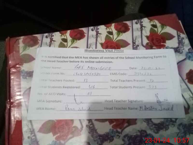 | Certified that this School was Inspected by the Undersigned MEA/DMO Today and the Information Stated Above is as Per Record. | |||||