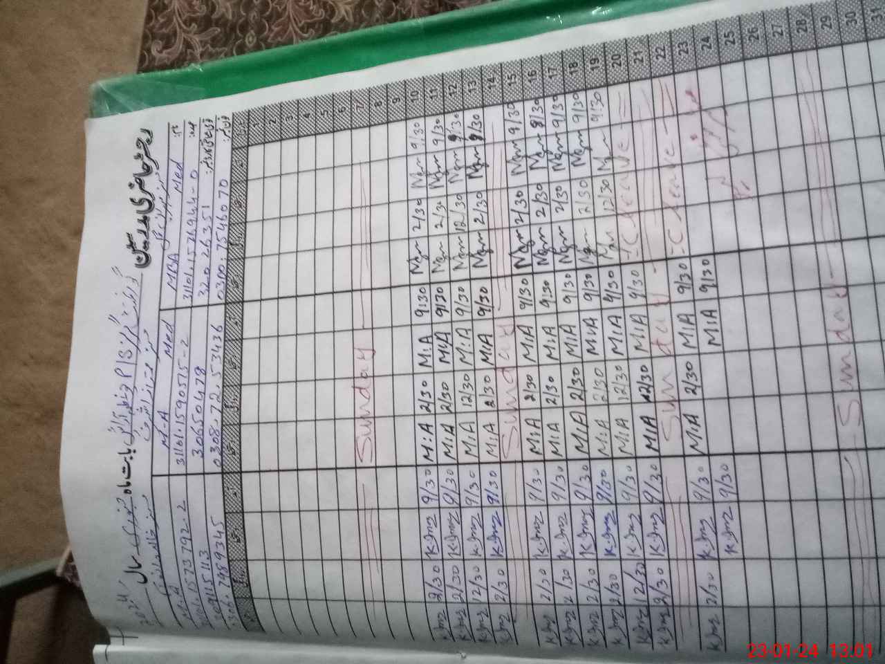 | CNIC | Full Name | Designation | R/C | Absence During Last Calender Month |