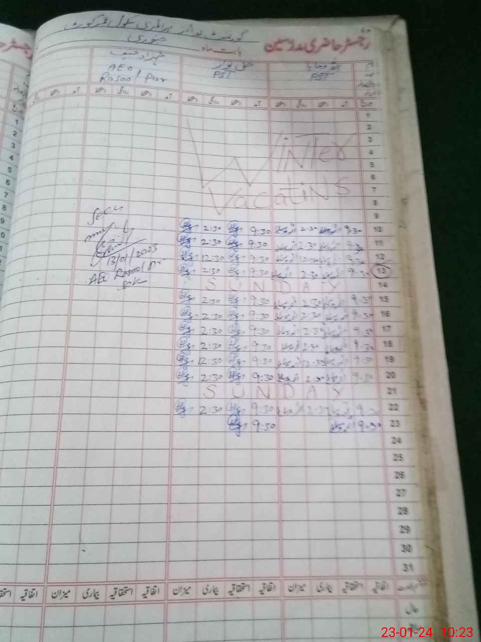 | CNIC | Full Name | Designation | R/C | Absence During Last Calender Month |