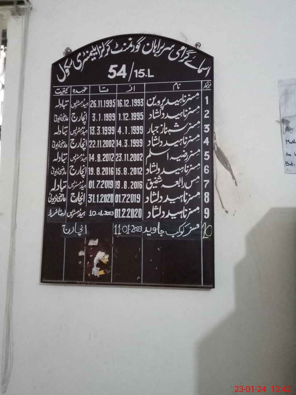 | EMIS Code: 36430094 | Name of School: GGES 54/15-L, MIAN CHANNU | |||