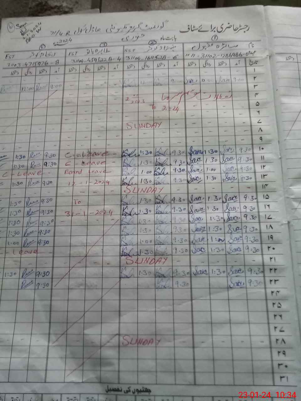 | 32**** | Uz**** Pe**** | 2 | 0 | 0 | 0 | 0 | 0 | 0 | 0 | 0 | 0 | Absent (Un-Authorized) | |