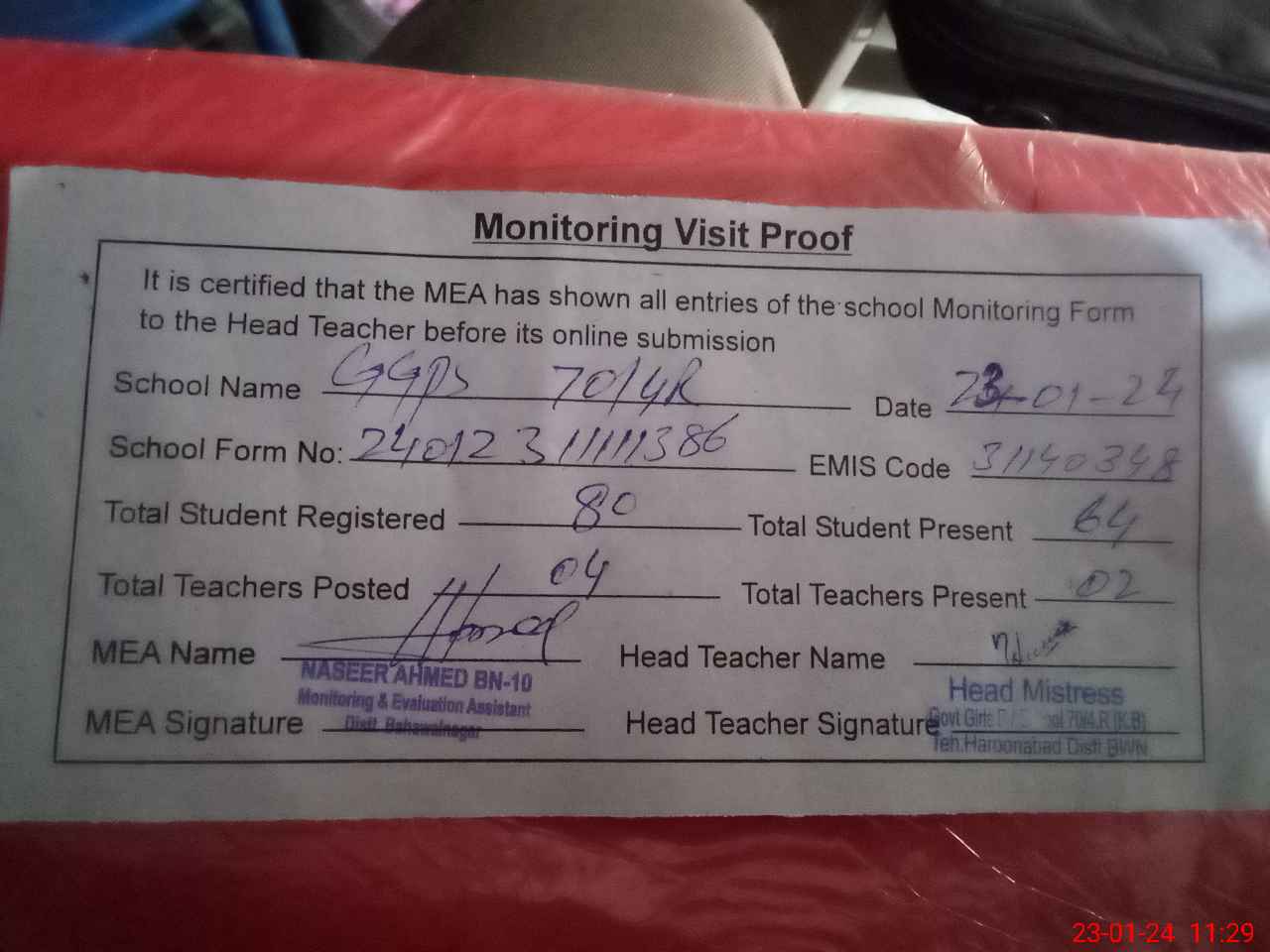 | EMIS Code: 31140348 | Name of School: GGPS CHAK NO 70/4-R | |||
