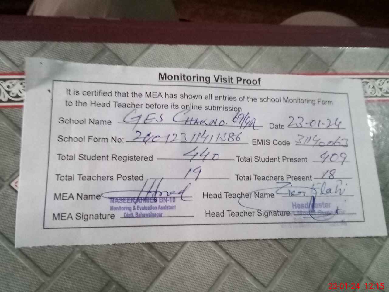 | EMIS Code: 31140063 | Name of School: GES CHAK 69/4-R | |||