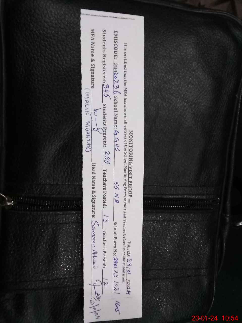 | Attendance Register | Head Teacher | MEA with School | Visit Proof |