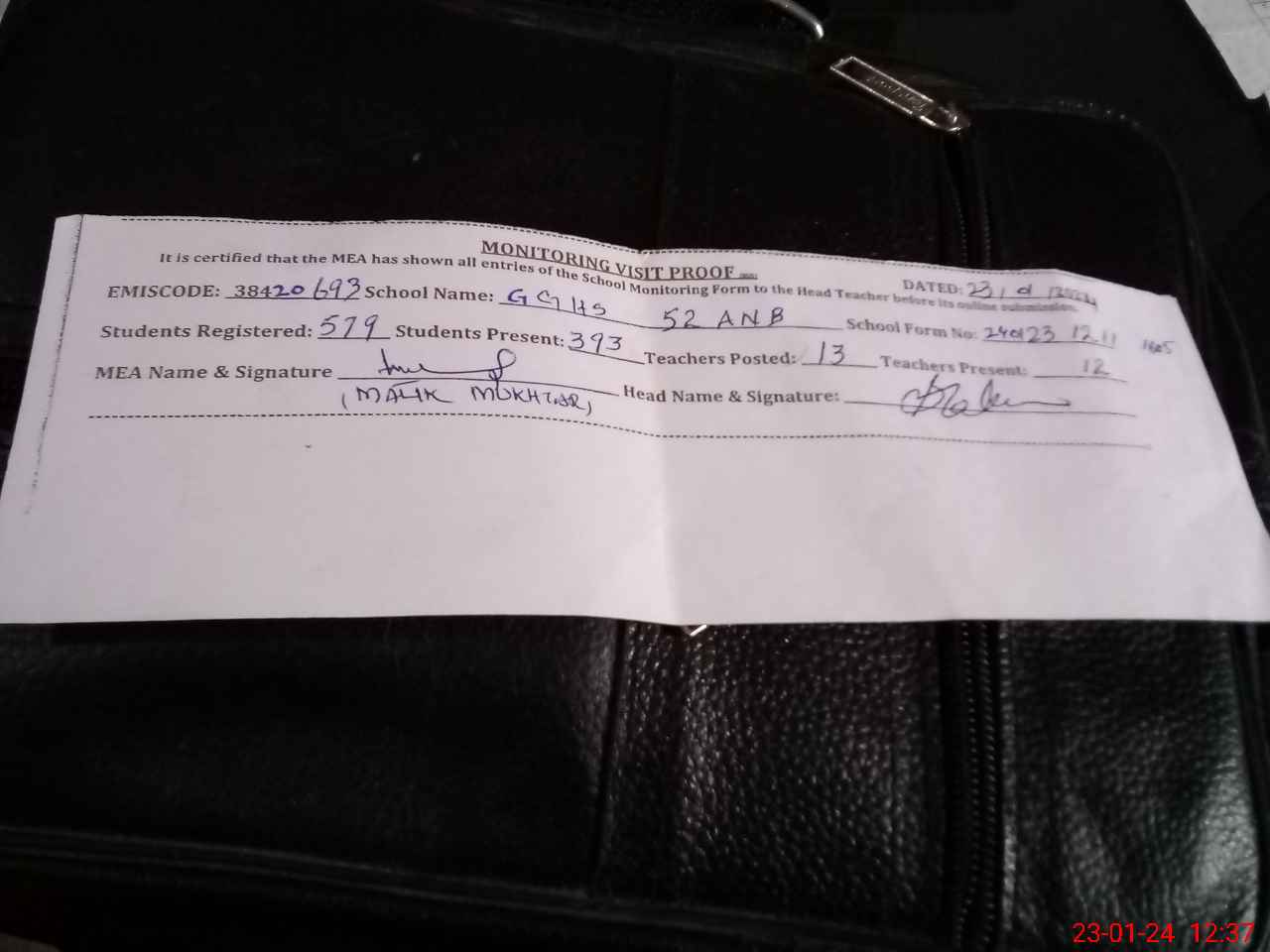 | EMIS Code: 38420693 | Name of School: GGHS CHAK NO.52 A-NB LUDAY WALA | |||