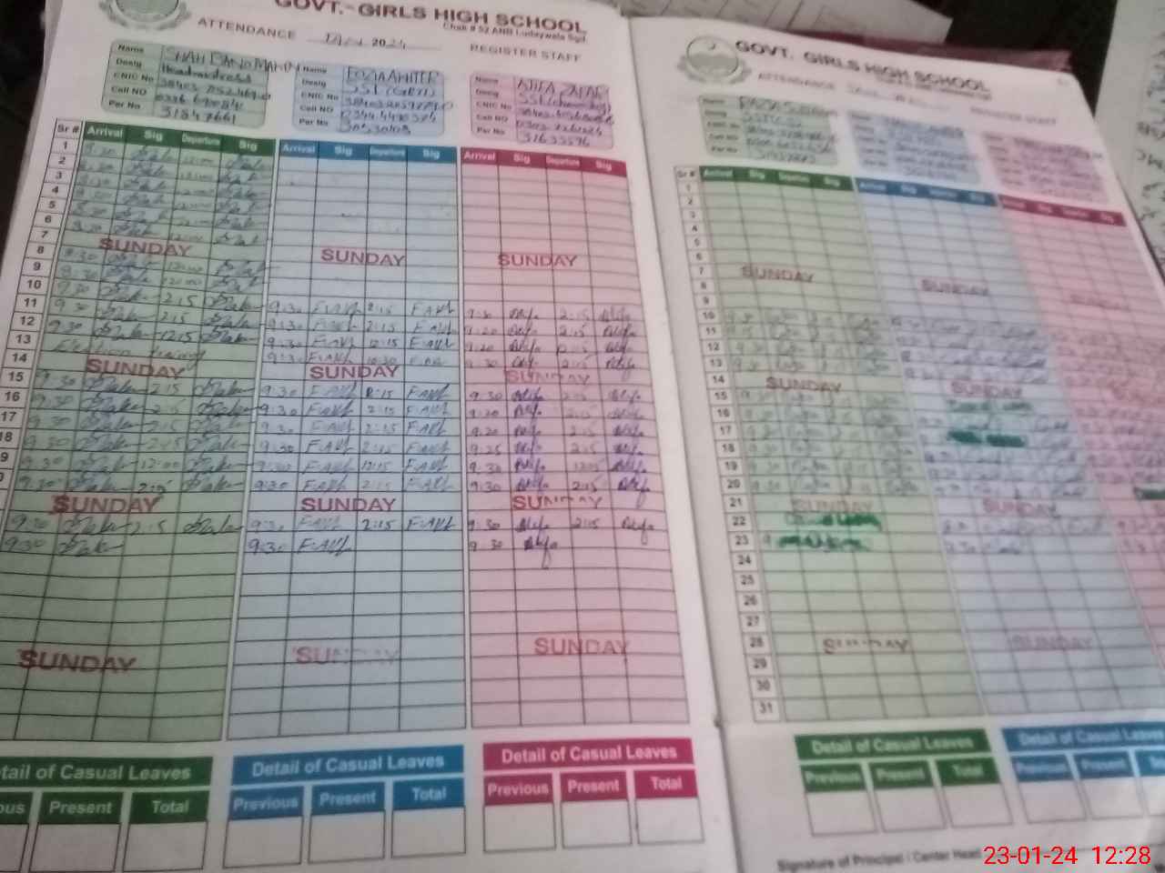 | CNIC | Full Name | Designation | R/C | Absence During Last Calender Month |