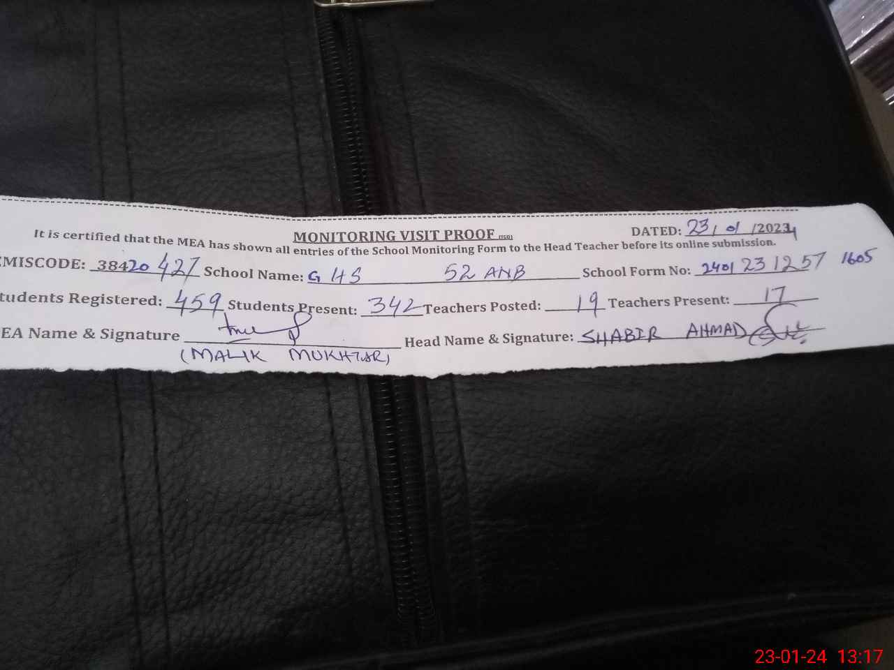 | EMIS Code: 38420427 | Name of School: GHS CHAK NO.52 ANB | |||