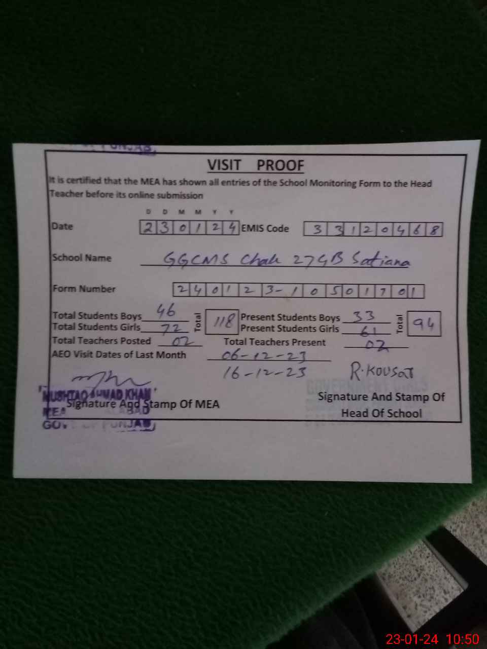 | EMIS Code: 33120468 | Name of School: GGCMS CHAK 27 GB SATIANA | |||