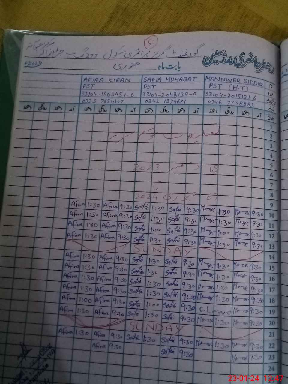 | Name: MU**** SI**** Designation: (School Headmaster's/Headmistress's) PST Phone/Cell Number: 03**** |