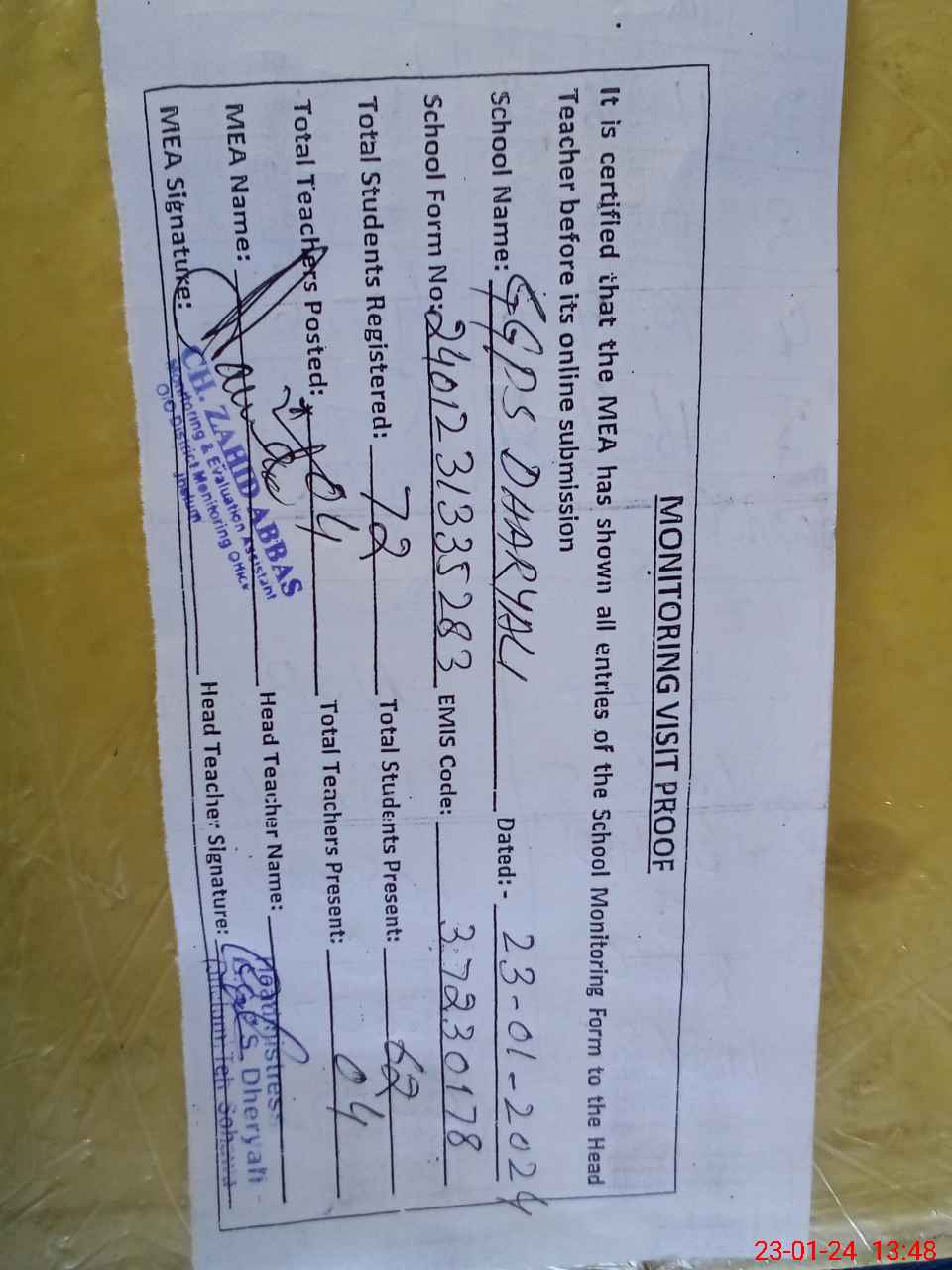 | EMIS Code: 37230178 | Name of School: GGPS DHARYALI | |||