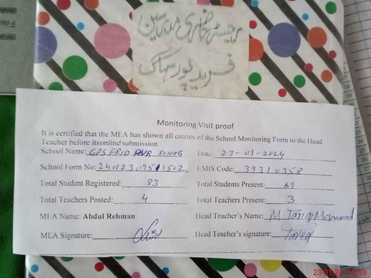 | EMIS Code: 39310358 | Name of School: GPS FARID PUR SOHAG | |||