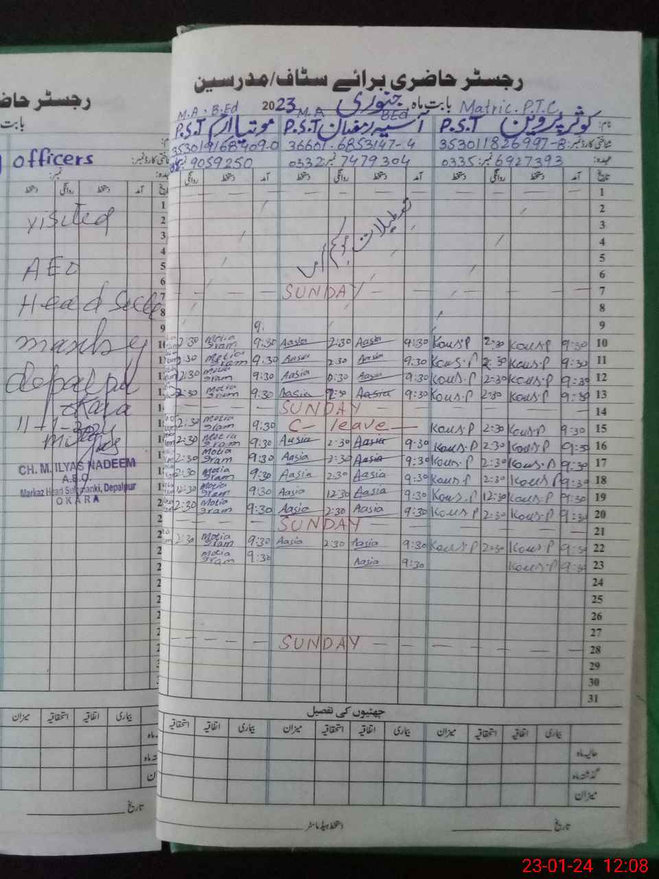 | CNIC | Full Name | Designation | R/C | Absence During Last Calender Month |