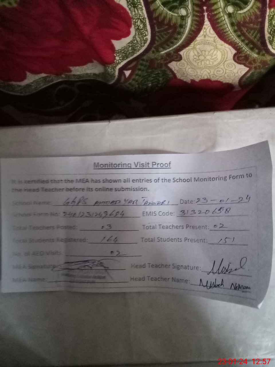 | EMIS Code: 31320658 | Name of School: GGPS AHMED YAR TANWARI JADEED | |||