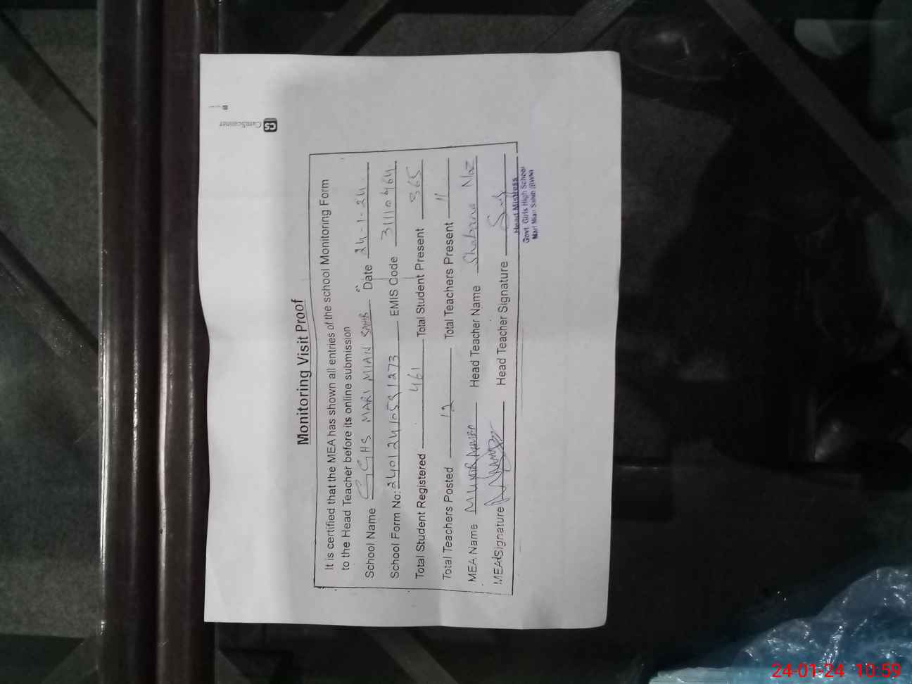 | Attendance Register | Head Teacher | MEA with School | Visit Proof |