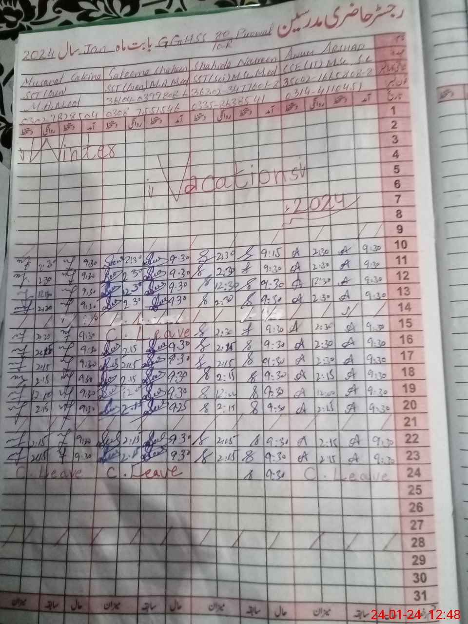 | Leave | Duty | Absent | Maternity | Medical | Ex- Pak |