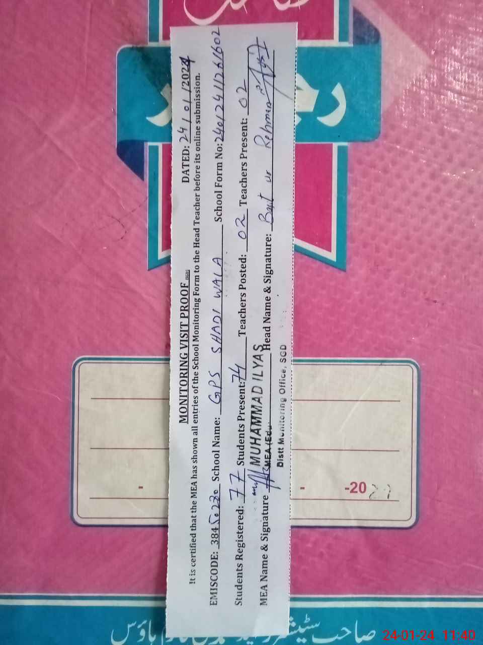 | EMIS Code: 38450280 | Name of School: GPS SHAHDI WALA | |||