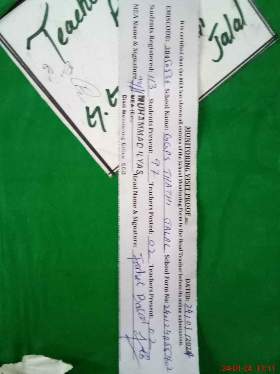 | Attendance Register | Head Teacher | MEA with School | Visit Proof |
