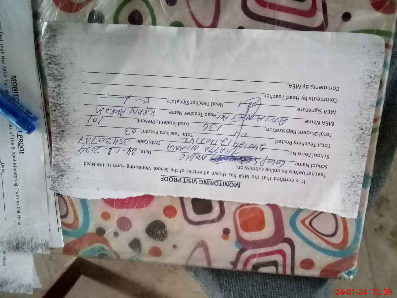 | Attendance Register | Head Teacher | MEA with School | Visit Proof |