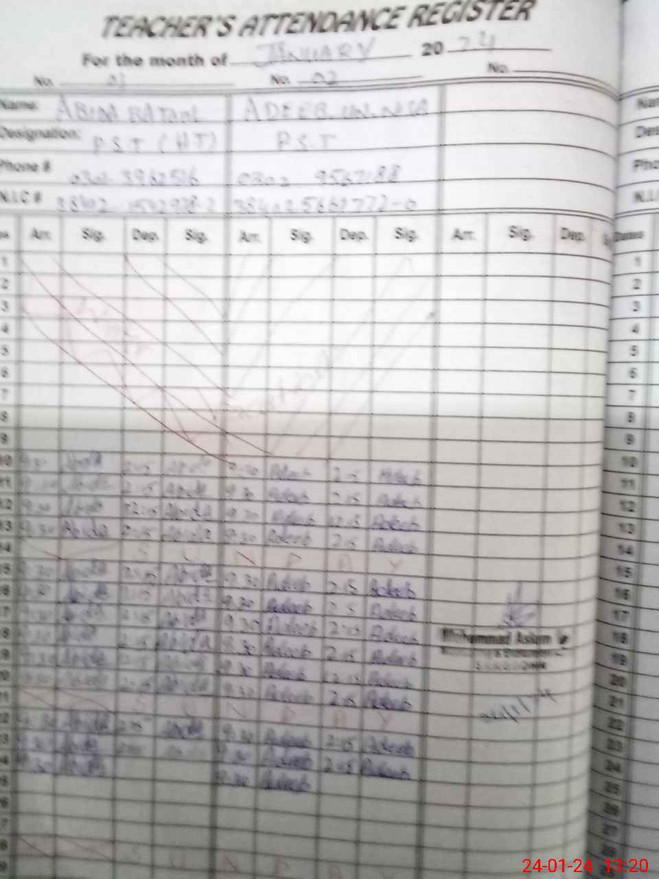 | Name: AA**** BA**** Designation: (School Headmaster's/Headmistress's) PST Phone/Cell Number: 03**** |