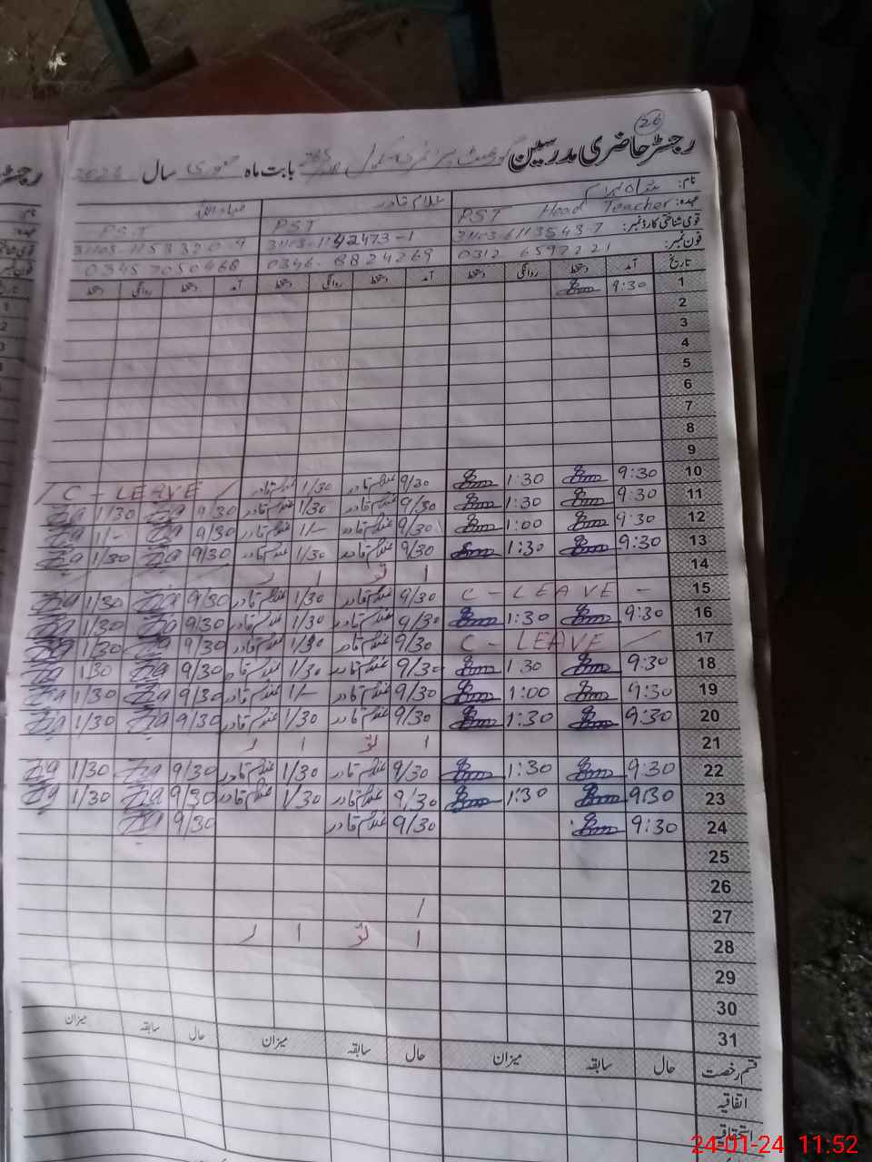 | Name: Sh**** Be**** Designation: (School Headmaster's/Headmistress's) PTC Phone/Cell Number: 03**** |