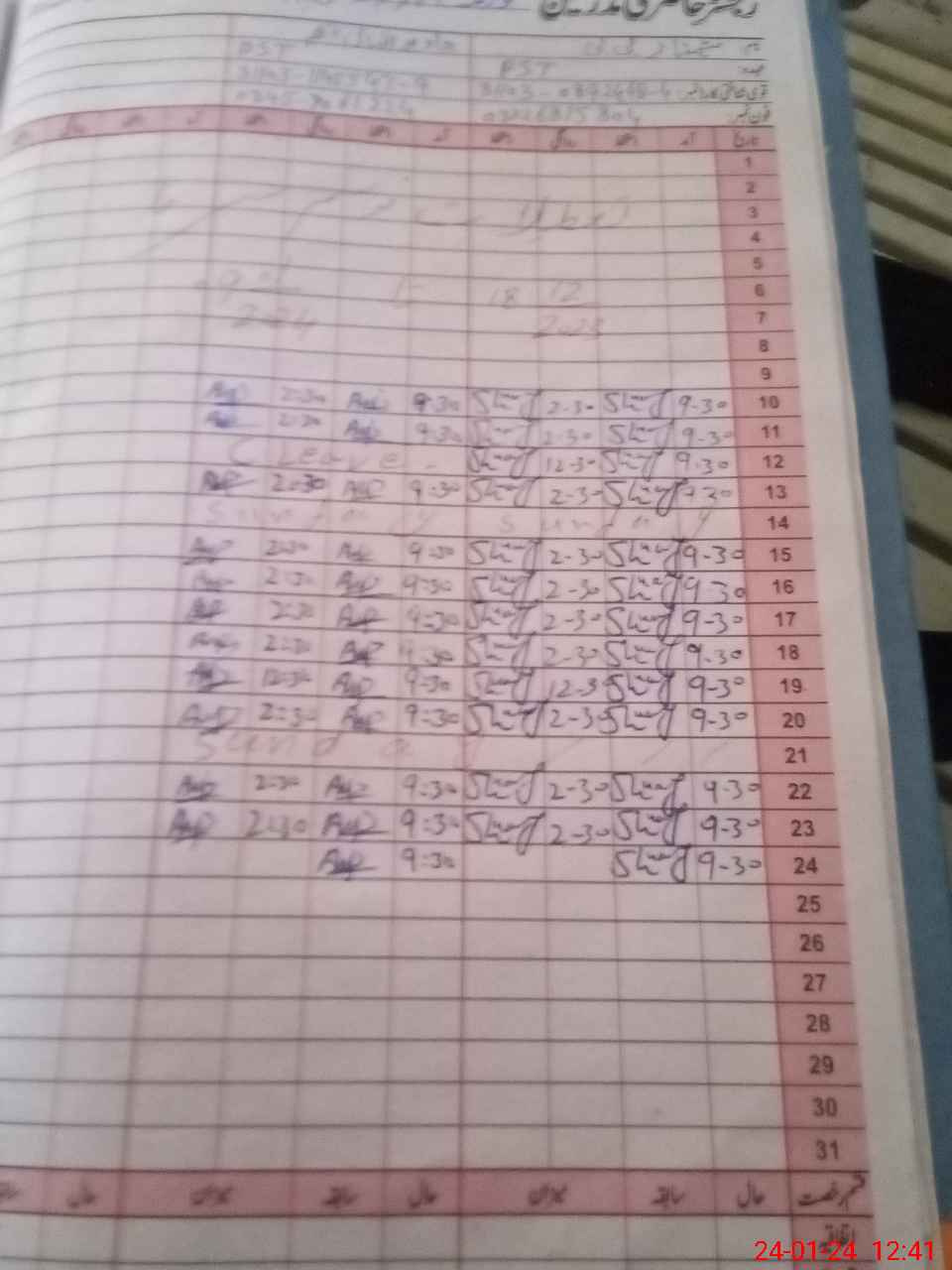 | CNIC | Full Name | Designation | R/C | Absence During Last Calender Month |