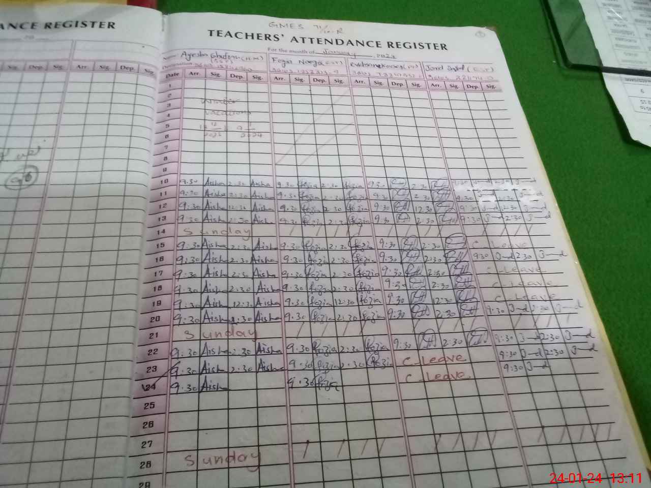 | CNIC | Full Name | Designation | R/C | Absence During Last Calender Month |