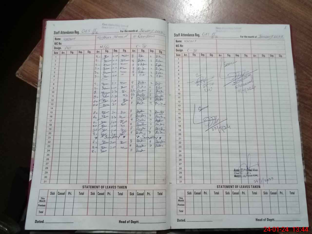 | CNIC | Full Name | Designation | R/C | Absence During Last Calender Month |