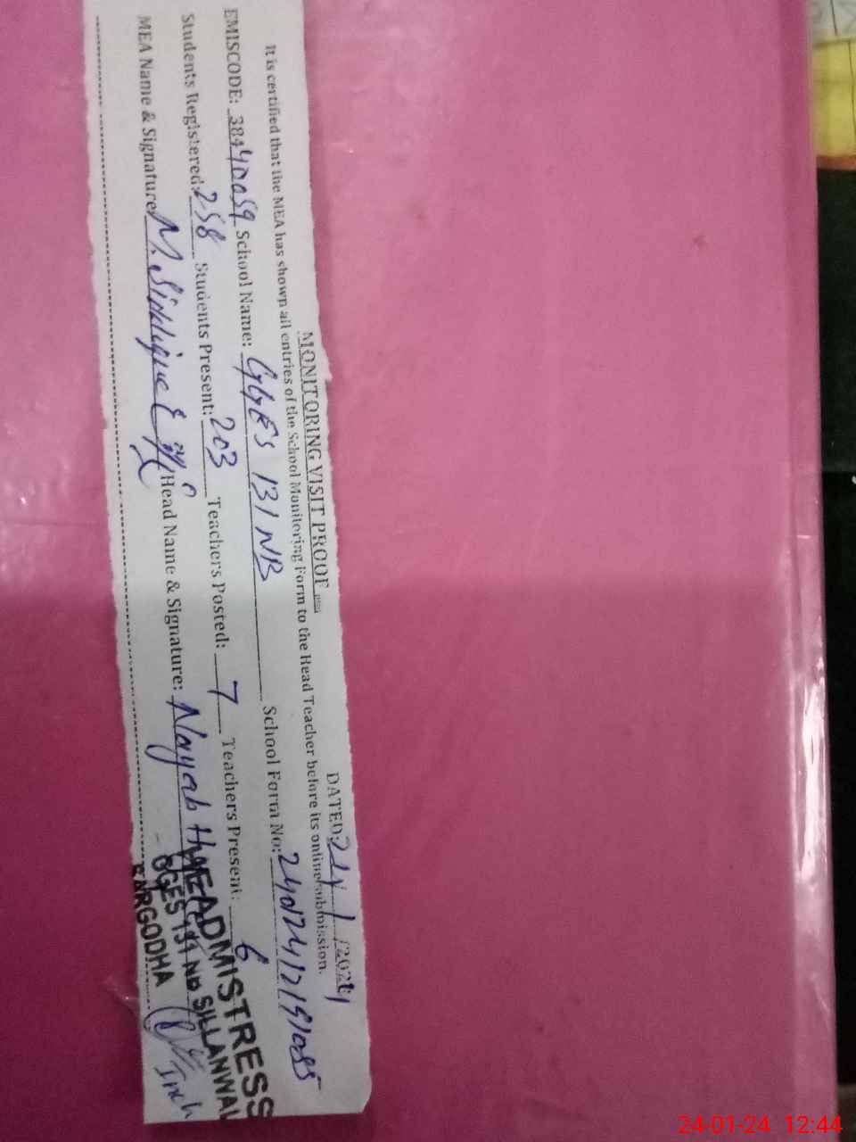 | EMIS Code: 38440059 | Name of School: GGES CHAK NO.131 NB | |||