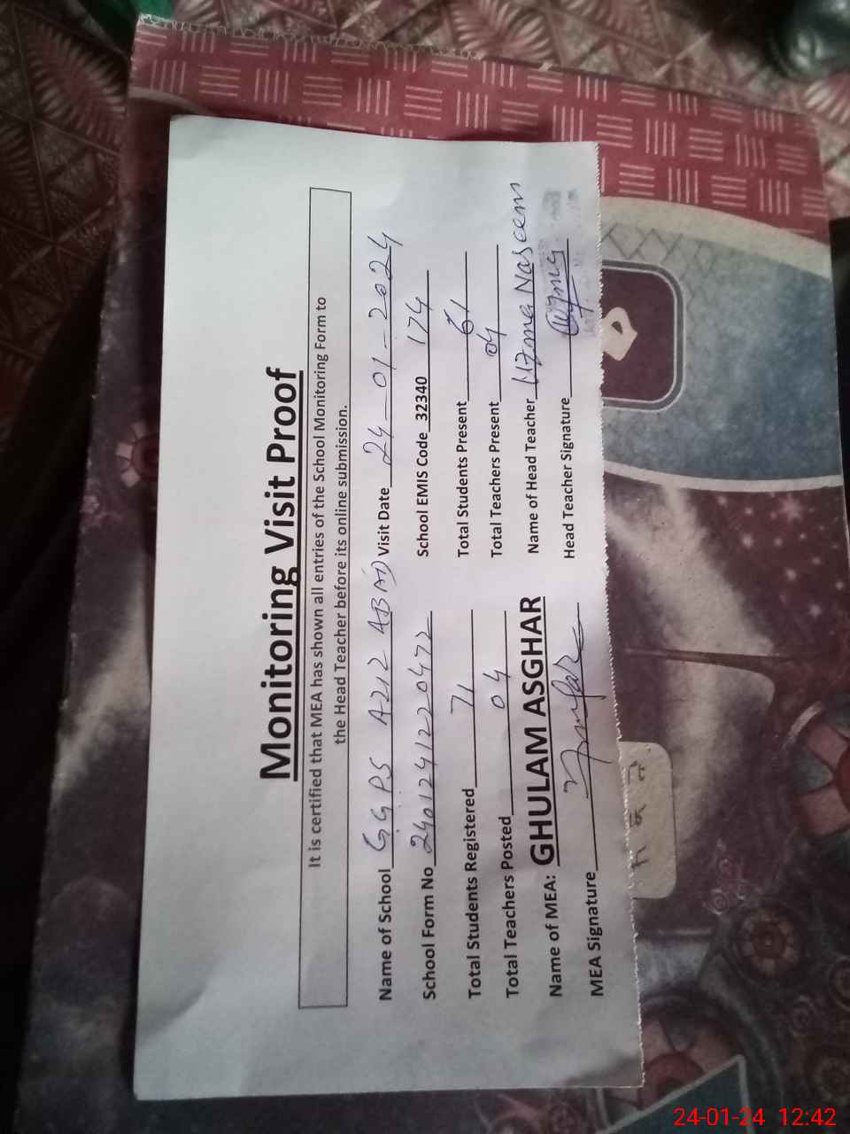 | EMIS Code: 32340174 | Name of School: GGPS AZIZ ABAD | |||