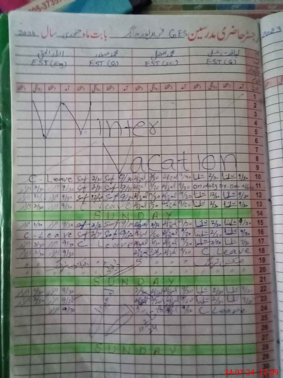 | CNIC | Full Name | Designation | R/C | Absence During Last Calender Month |