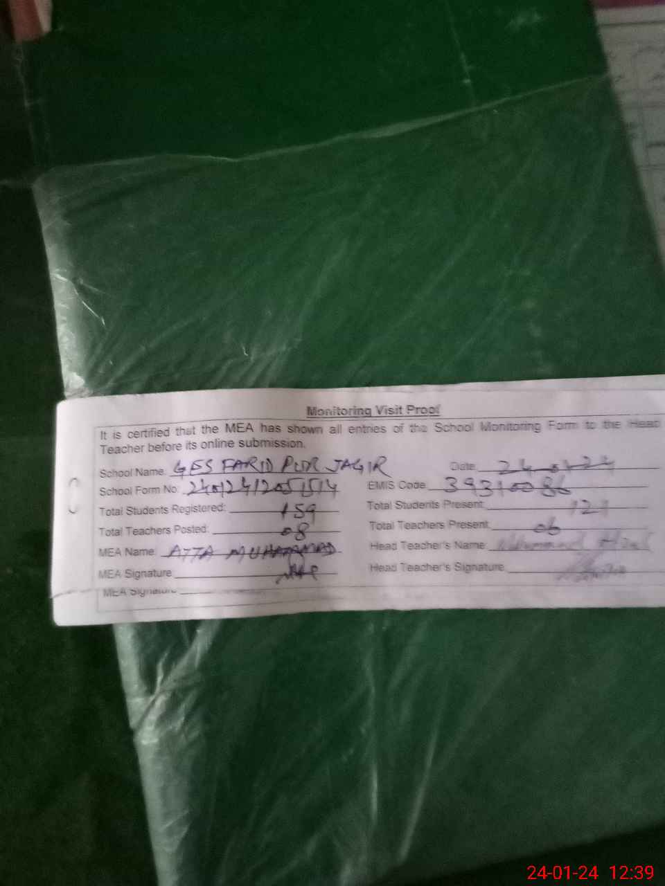 | Attendance Register | Head Teacher | MEA with School | Visit Proof |