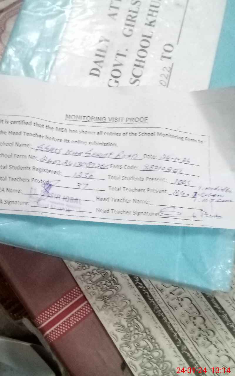 | Attendance Register | Head Teacher | MEA with School | Visit Proof |