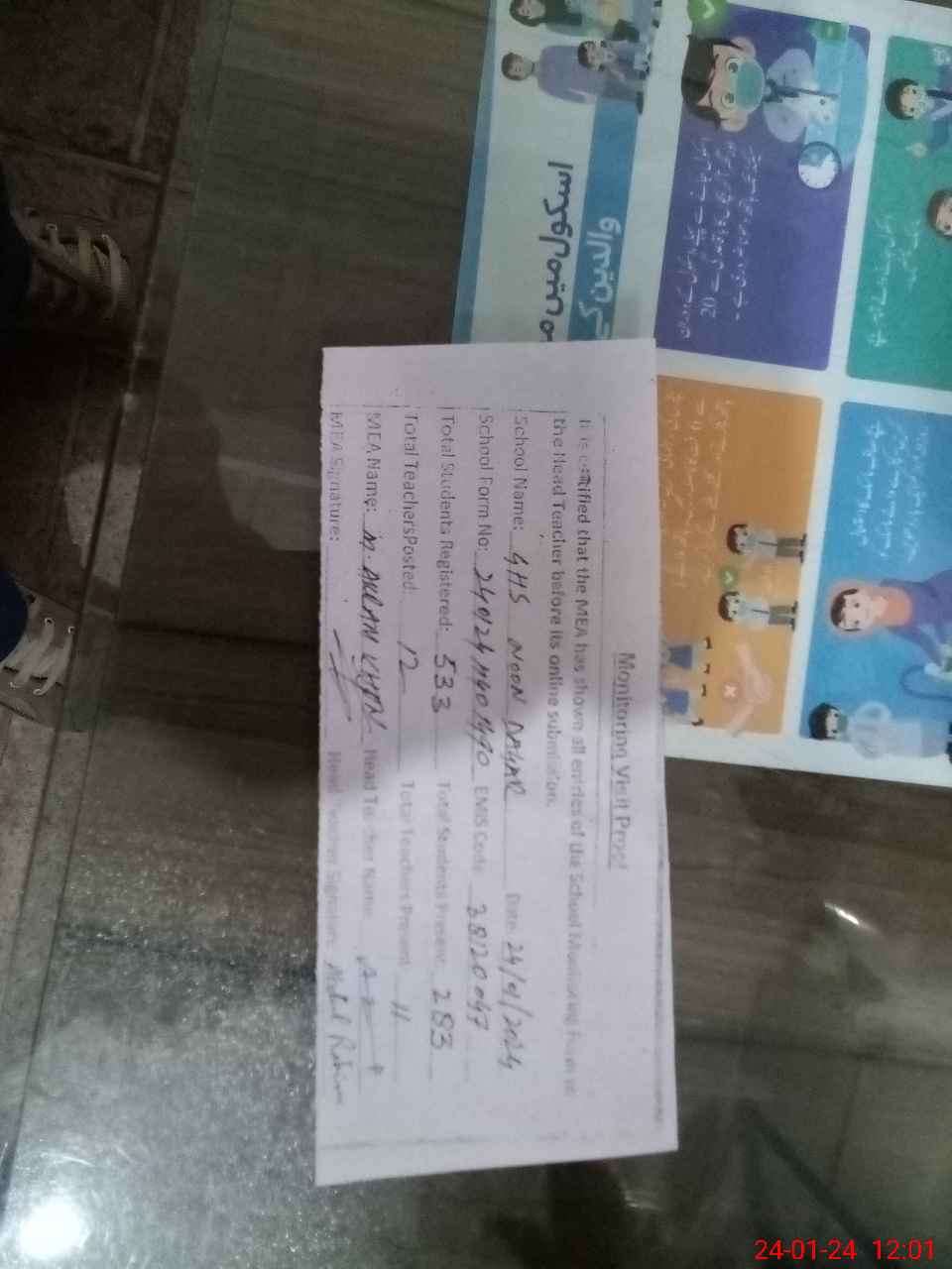 | Attendance Register | Head Teacher | MEA with School | Visit Proof |