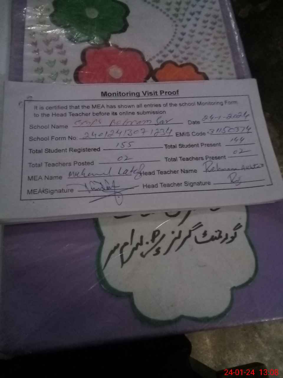 | Attendance Register | Head Teacher | MEA with School | Visit Proof |